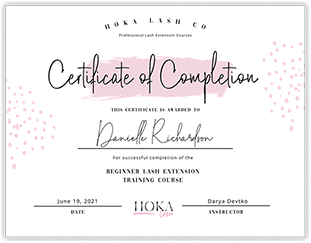 Lash Certification will be delivered digitally, with option to print and sent via first class mail.